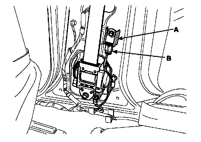 4. Remove the bolt(A) then remove the side impact sensor (B).