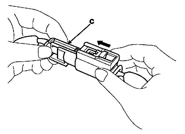 Hold both connector halves and press firmly until the projection (C) of the sleeve-side connector clicks to lock.