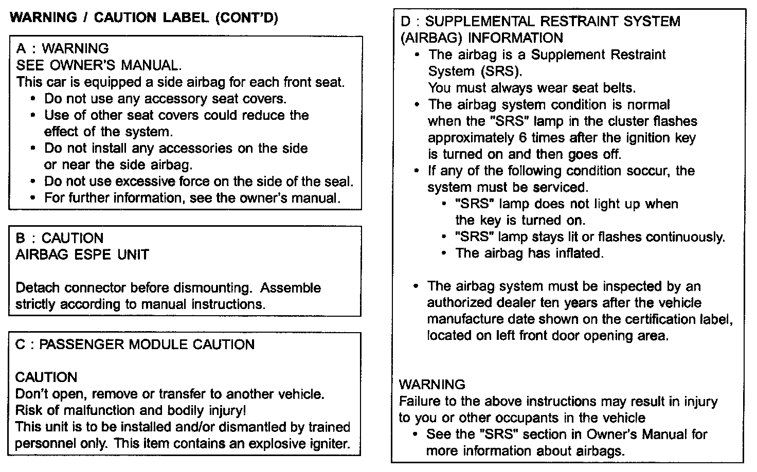 Air Bag Warning/Caution Label Part 2: