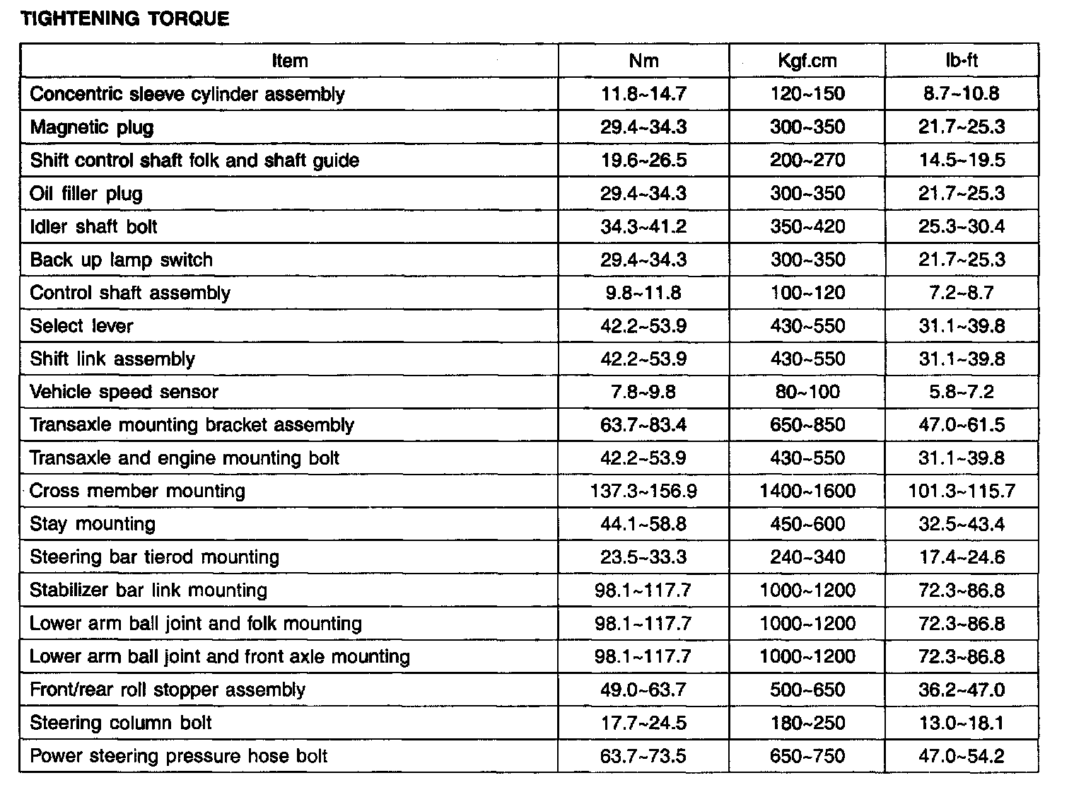 TIGHTENING TORQUE