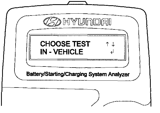 2. The tester will ask if the battery is connected "IN A VEHICLE" or "OUT OF A VEHICLE". Make your selection by pressing the arrow buttons; then press ENTER.