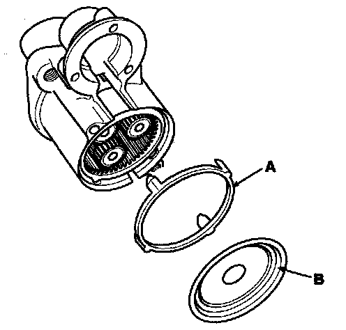 4. Remove the brush holder assembly (A), yoke (B) and armature (C).