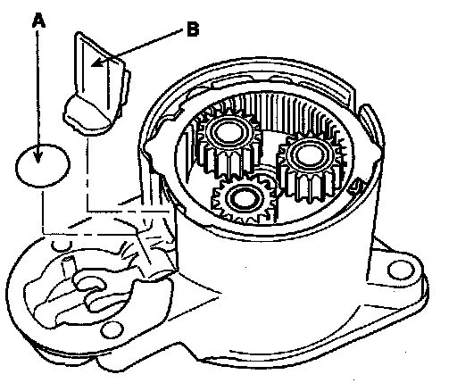 8. Disconnect the planet shaft assembly (A) and lever (B).