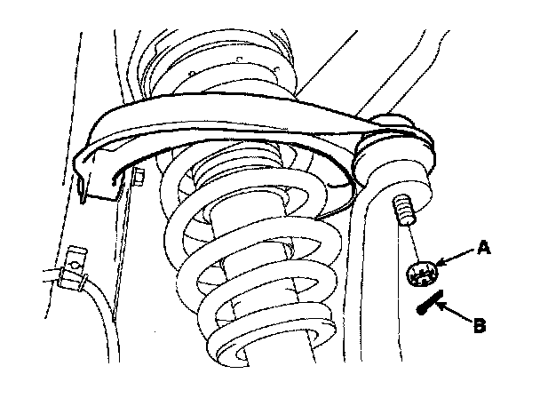 3. Remove the upper arm ball joint self-locking nut (A) and the split pin (B).