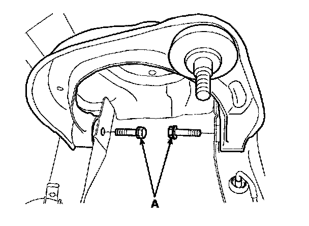 6. Remove the two upper arm mounting bolts (A) from the body.