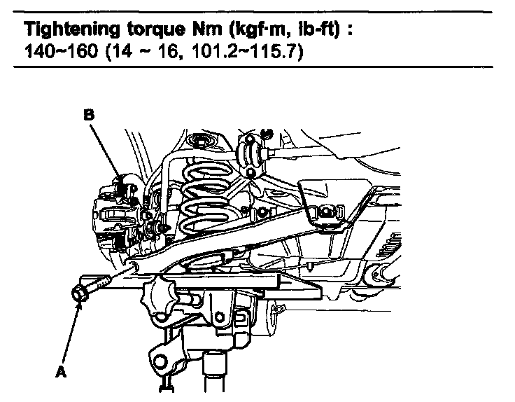 Tightening torque 140 - 160 Nm (14 - 16 kgf-cm, 101.2 - 115.7 ft. lbs.)