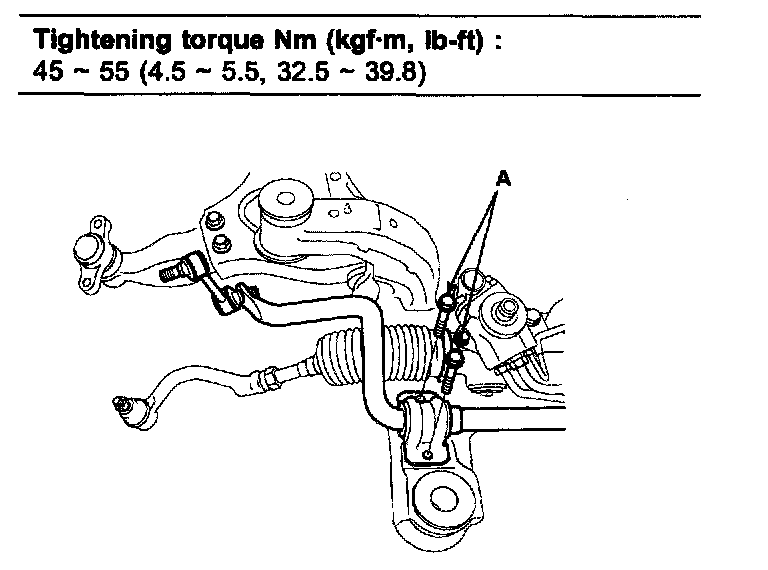 Tightening torque 45 - 55 Nm (4.5 - 5.5 kgf-cm, 32.5 - 39.8 ft. lbs.)