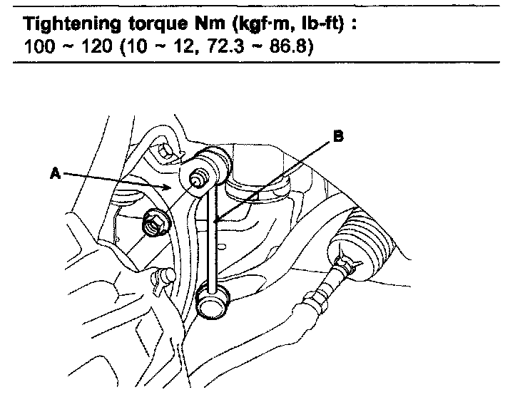 5. Install the stabilizer link (B) to the fork (A).