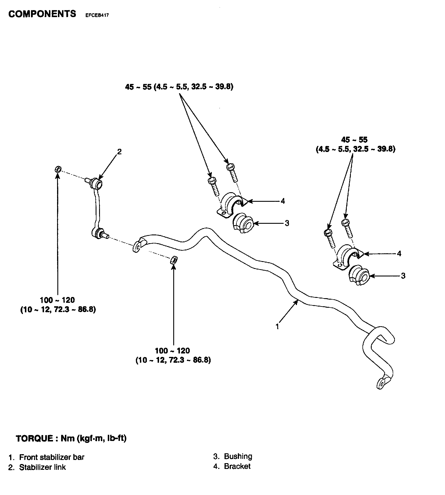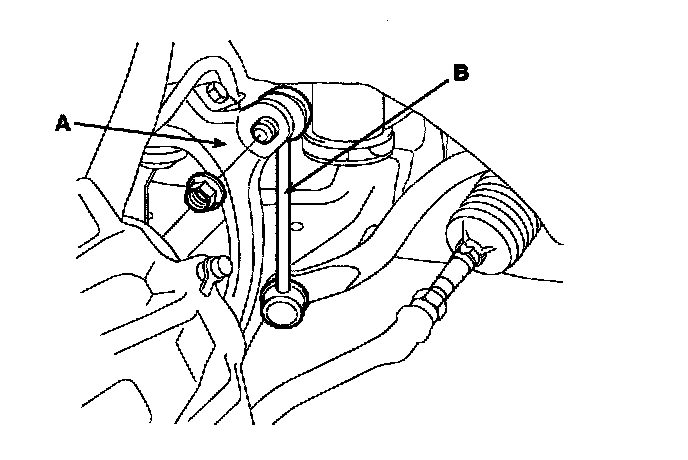 6. Remove the stabilizer bracket (B) and bushing (C).