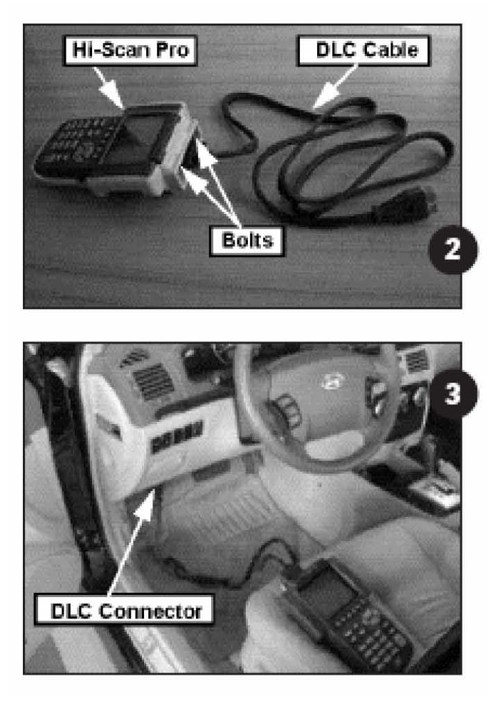 2. Attach the Data Link Connector (DLC) cable to the Hi-Scan Pro main body and securely tighten two bolts.