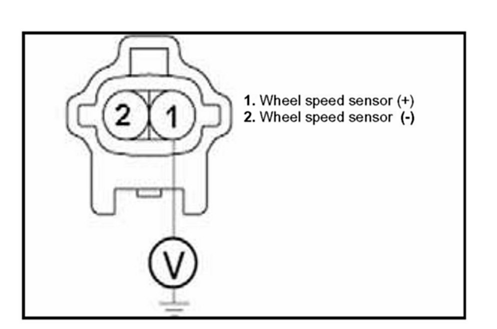 2. Measure voltage between terminal "1" of the vehicle harness wheel speed sensor harness connector and chassis ground.