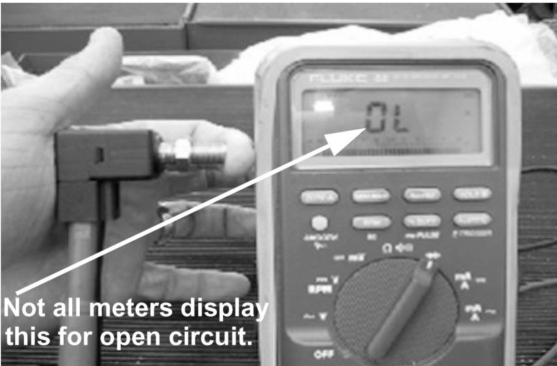 10. With the plunger not depressed, the meter should read open circuit (no continuity).