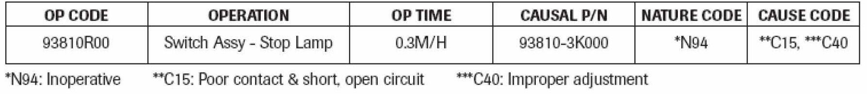 test, recheck the brake pedal stopper to stop lamp switch clearance or follow the shop manual FTM to diagnose wiring.