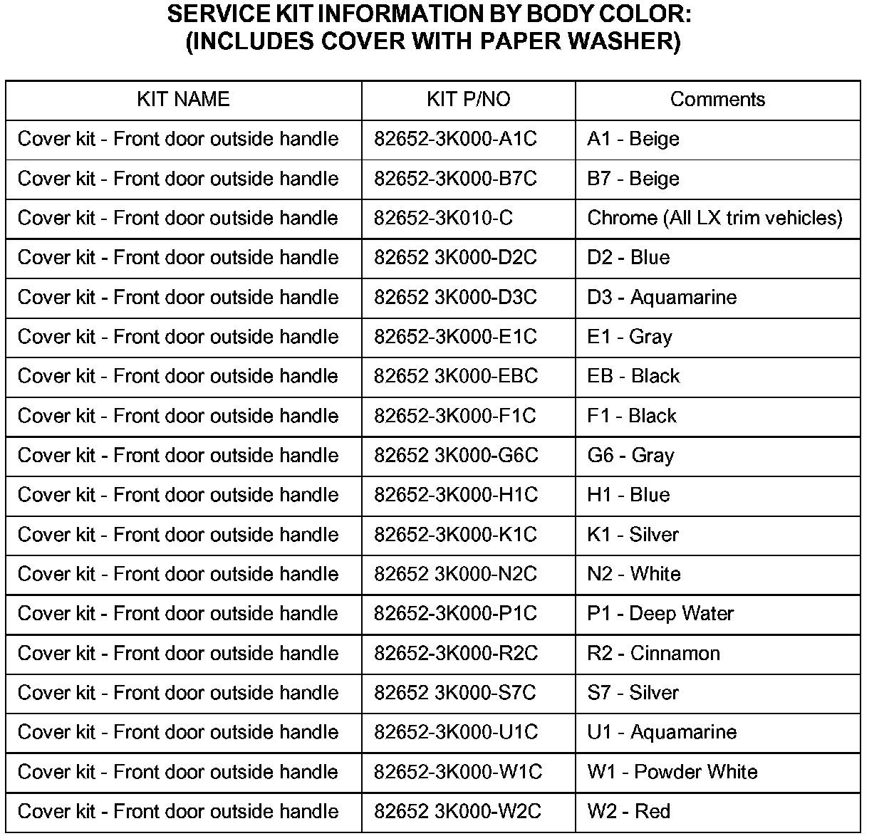 REPLACEMENT OF FRONT OUTSIDE DOOR HANDLE COVERS - SERVICE CAMPAIGN T19