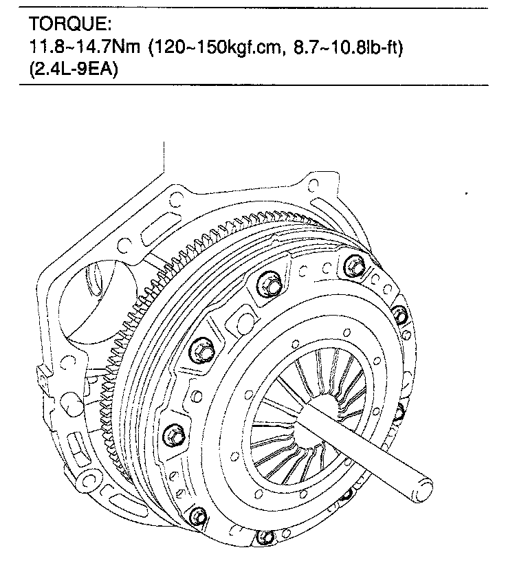 TORQUE: 11.8 - 14.7 Nm (120 - 150 kgf-cm, 8.7 - 10.8 ft. lbs.) (2.4L-9EA)