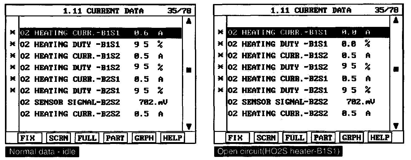 4. Is the "HO2S Heater(B1/S1." data displayed correctly?