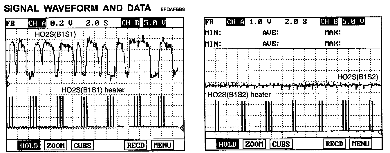HO2S(B1/S2) is in the back of Catalytic Converter to check the proper operation of catalyst. As Exhaust gas already passed through catalyst, oxygen density in it is within specific range. If the oxygen density changes in accordance with HO2S(B1/S2), it means the poor performance of catalytic converter.