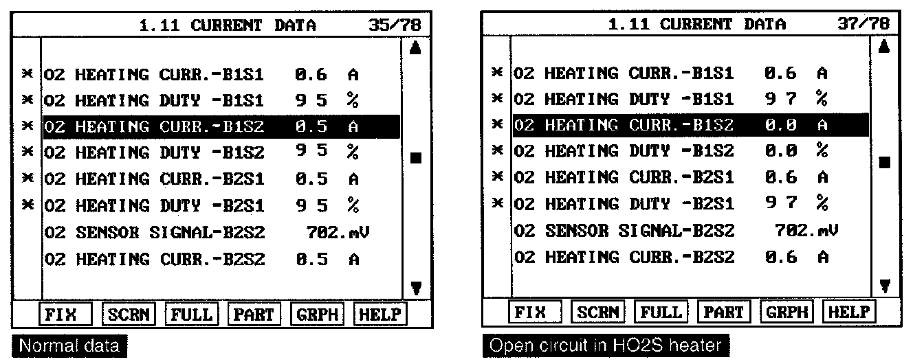 3. Monitor "HO2S(B1/S2) Heater" item on the service data.