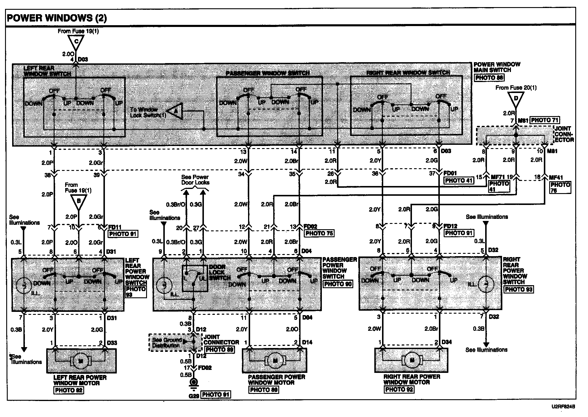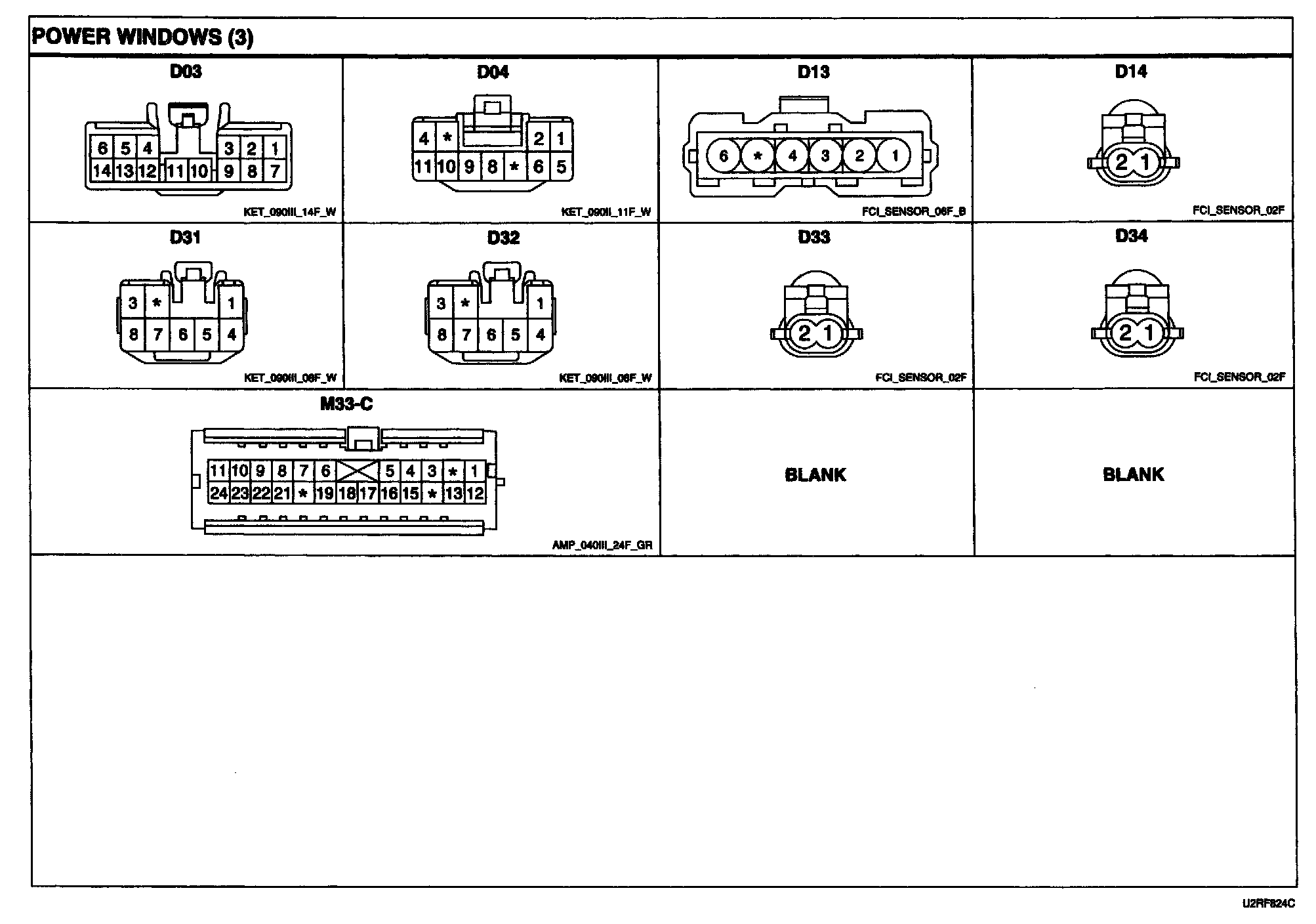 Power Windows Connector Pin Outs: