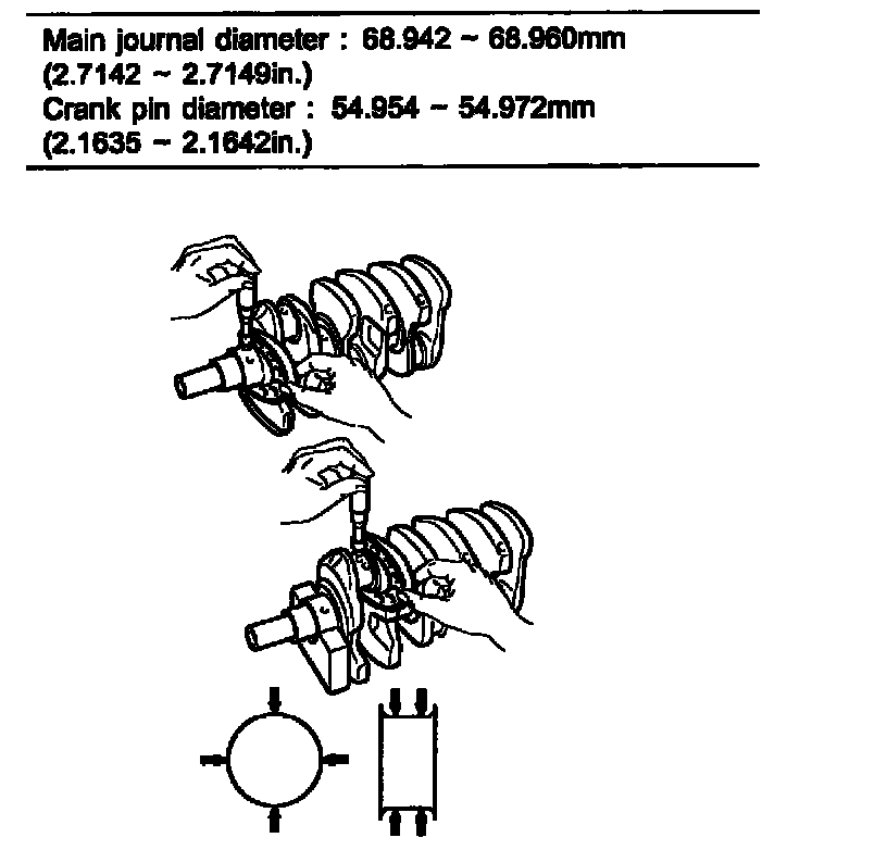 Main journal diameter: 68.942 - 68.960 mm (2.7142 - 2.7149 inch)