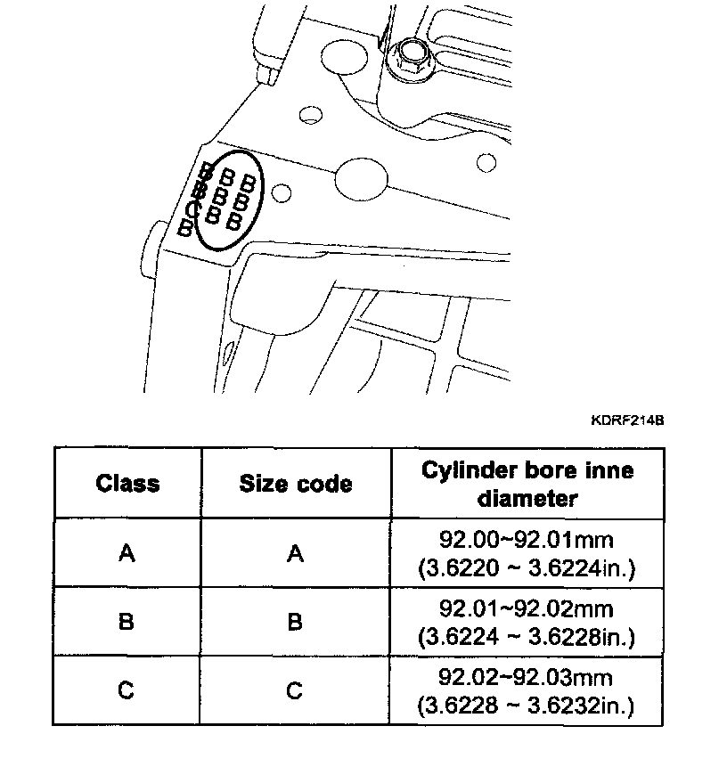 6. Check the cylinder bore size code on the cylinder block.