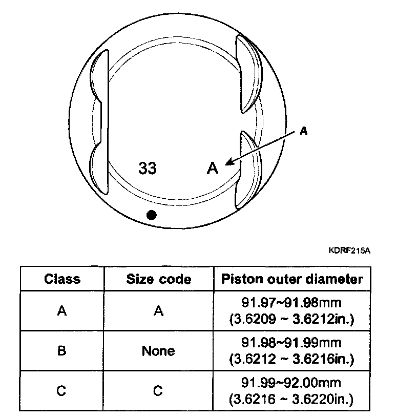 7. Check the piston size code on the piston top face.