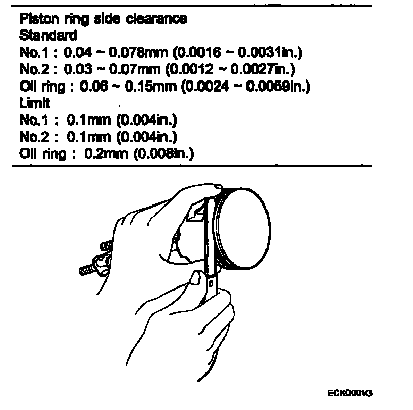 4. Inspect the piston ring side clearance.