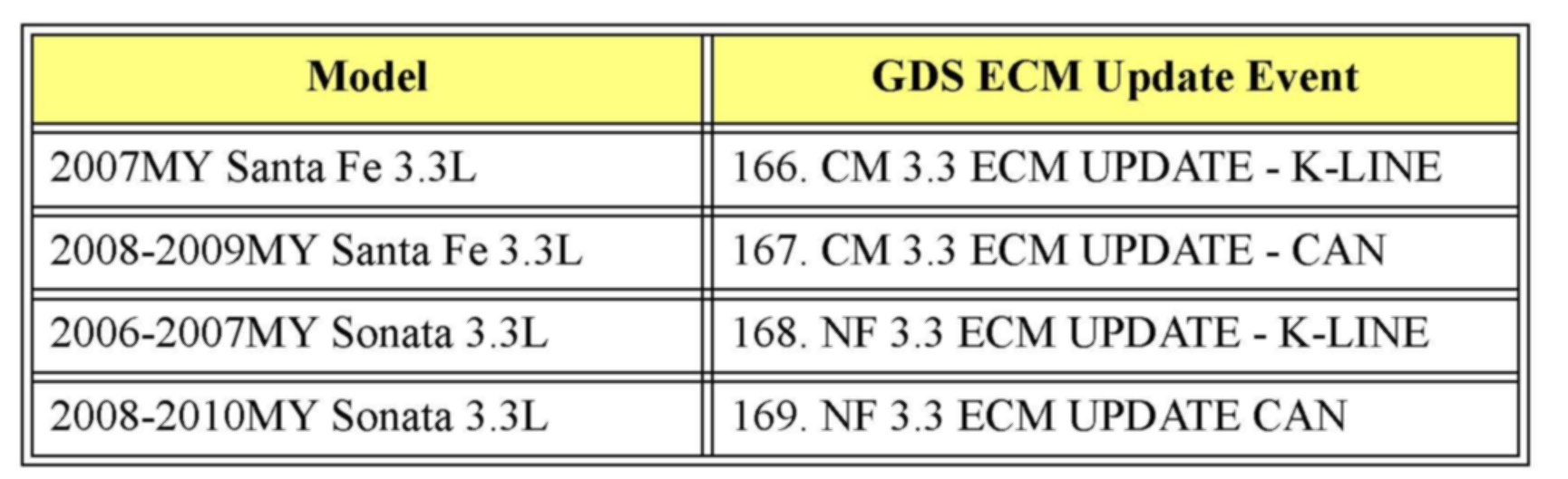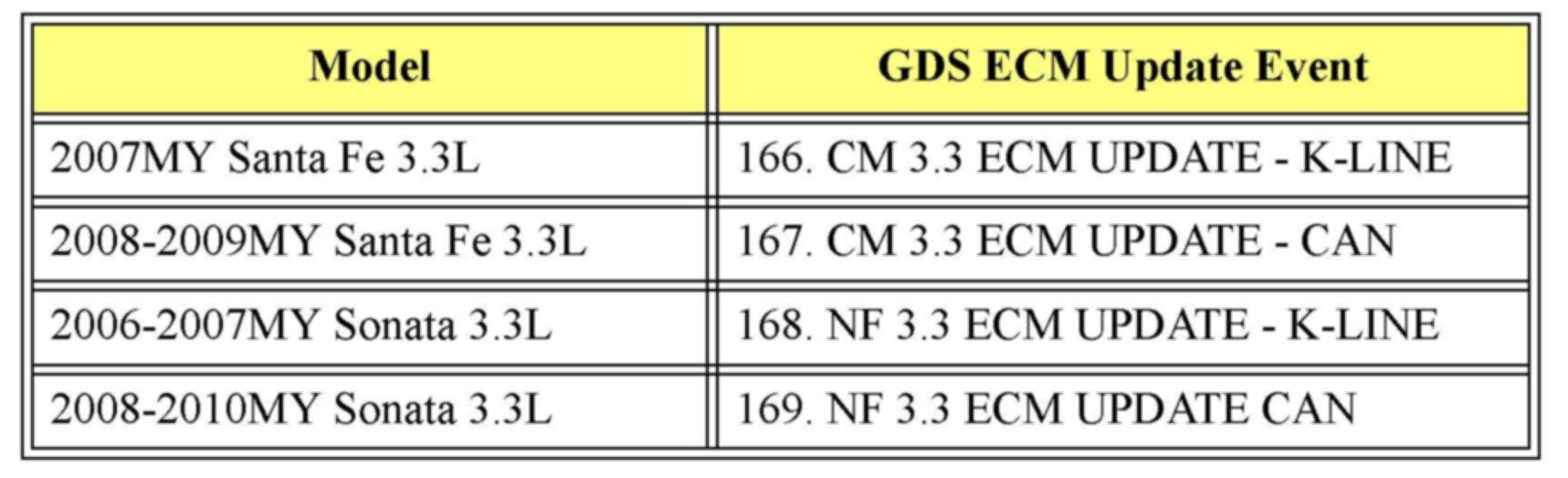 There are 2 ROM-ID of the 2008MY Sonata ROM-ID table that require VIN write after the reflash. DTC P0630 may set for a No VIN error. Perform the VIN write and clear the DTC after.