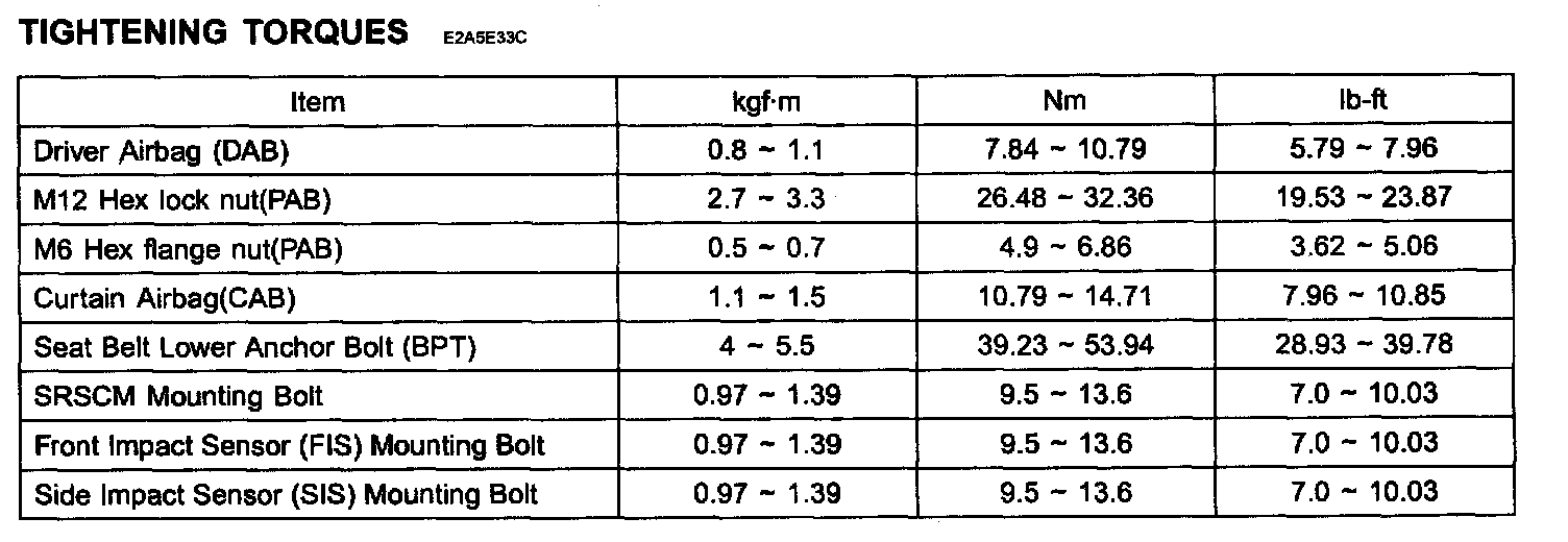 Tightening Torques: