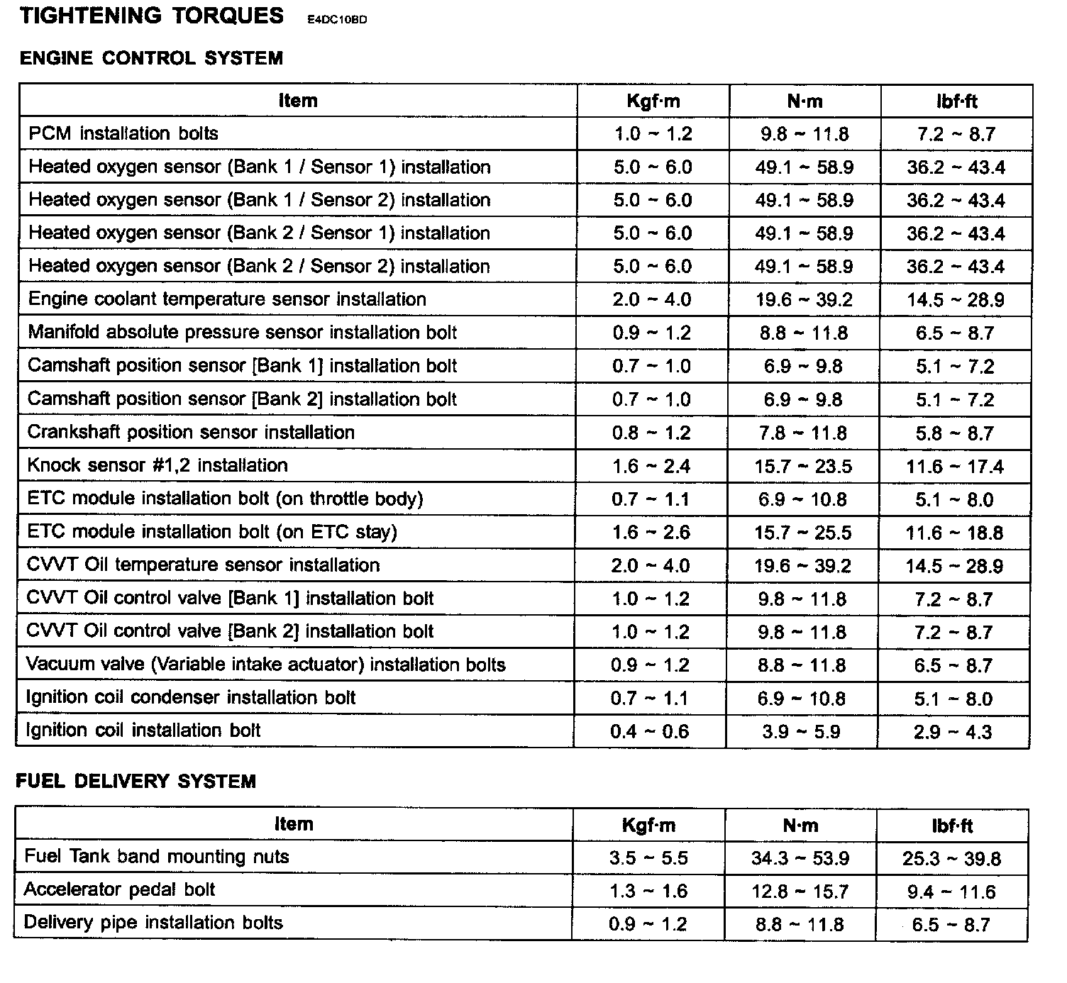 Tightening Torques: