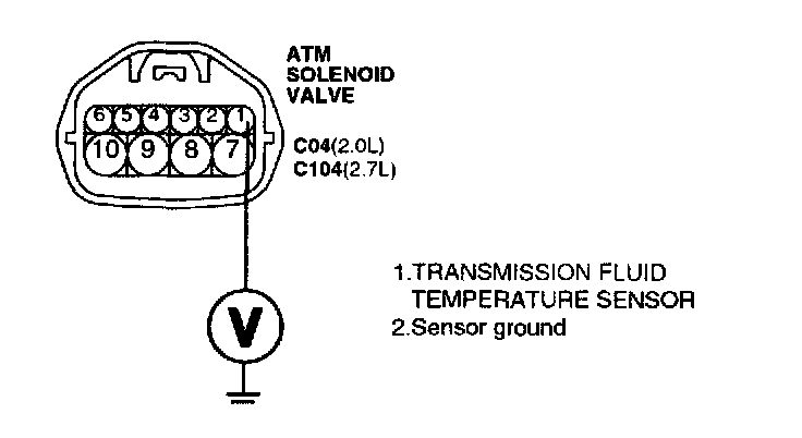 3. Measure the voltage between terminal "1" of the "TRANSMISSION FLUID TEMPERATURE SENSOR" harness connector and chassis ground.