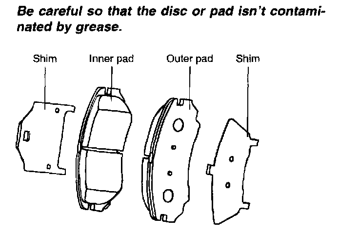 CAUTION: Be careful so that the disc or pad isn't contaminated by grease.