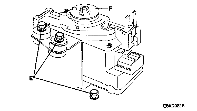 3. Loosen the three mounting bolts(E), and remove the cruise control unit with the bracket(F).