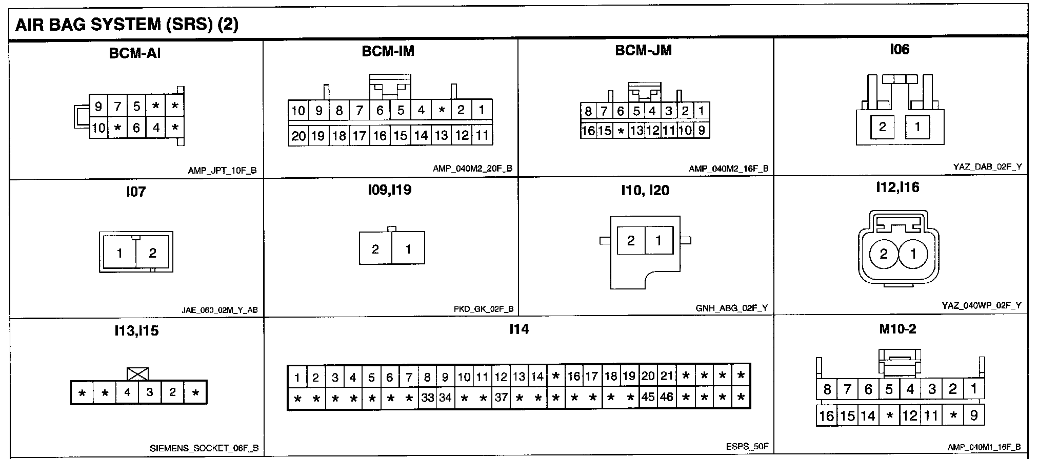 Air Bag System (SRS) Connector Pin Outs: