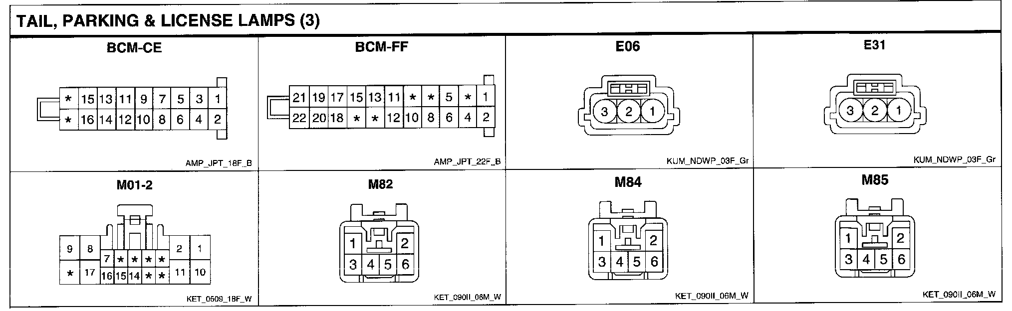 Tail, Parking & Licence Lamps Connector Pin Outs: