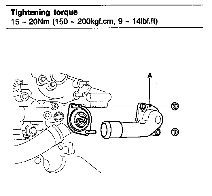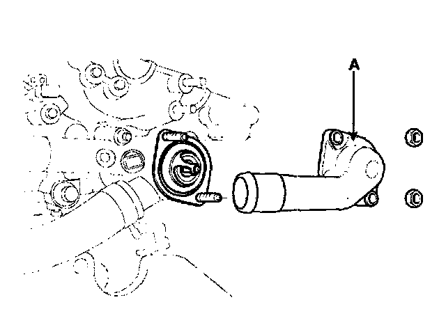 2. Remove water inlet (A), gasket and thermostat.