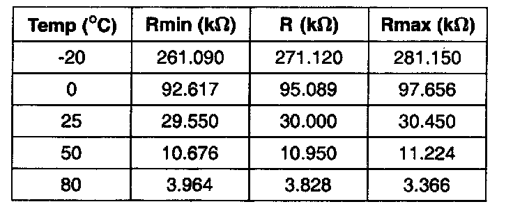 RESISTANCE-TEMP CHARACTERISTIC TABLE