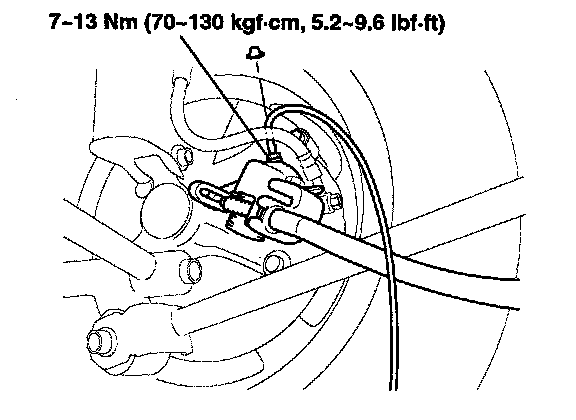 3. Loosen the right-rear brake bleed screw to allow air to escape from the system. Then tighten the bleed screw securely.