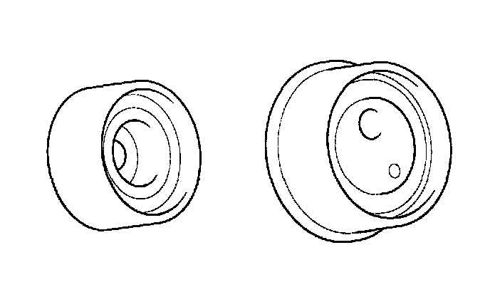 2. Inspect the tensioner pulley and the idler pulley for easy and smooth rotation and check for play or noise. Replace as necessary.