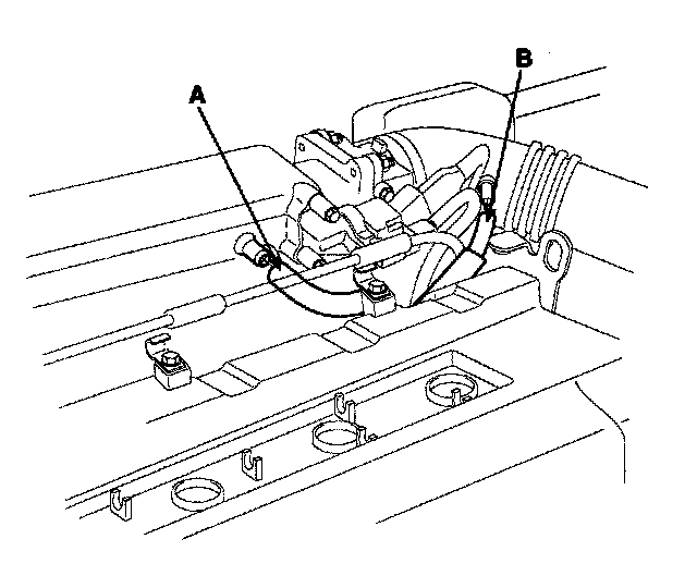 3) Install the accelerator cable (A) from the cylinder head cover.