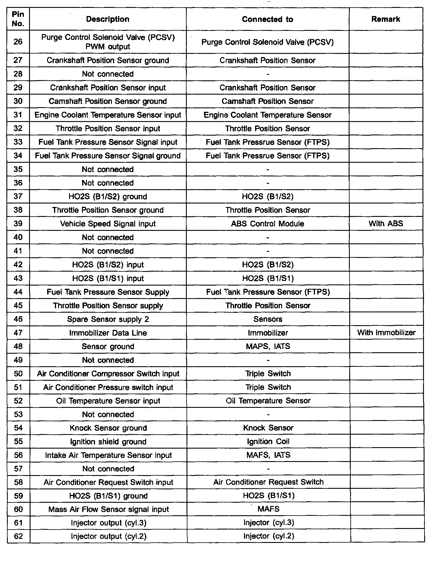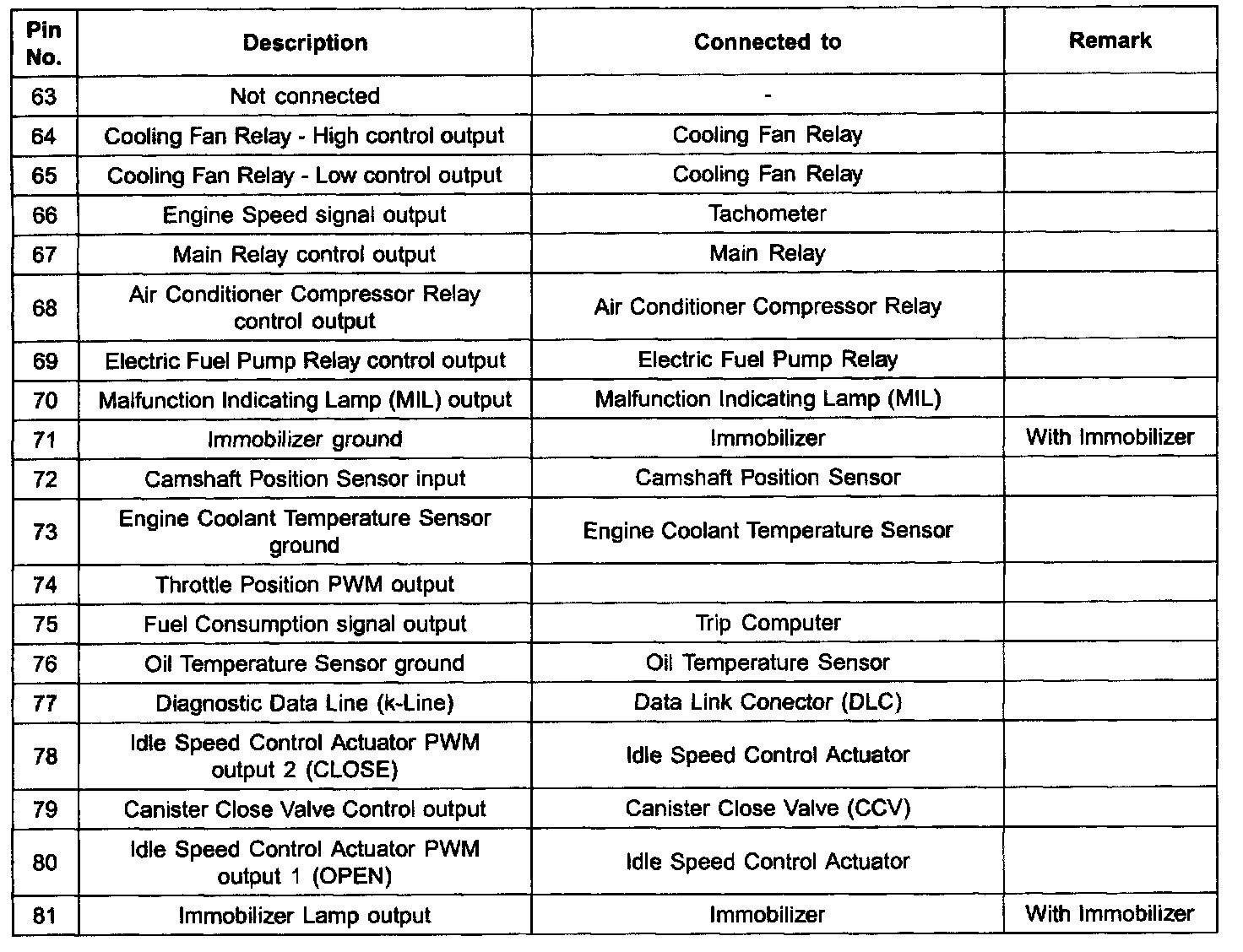 ECM Terminal Input/Output Signal