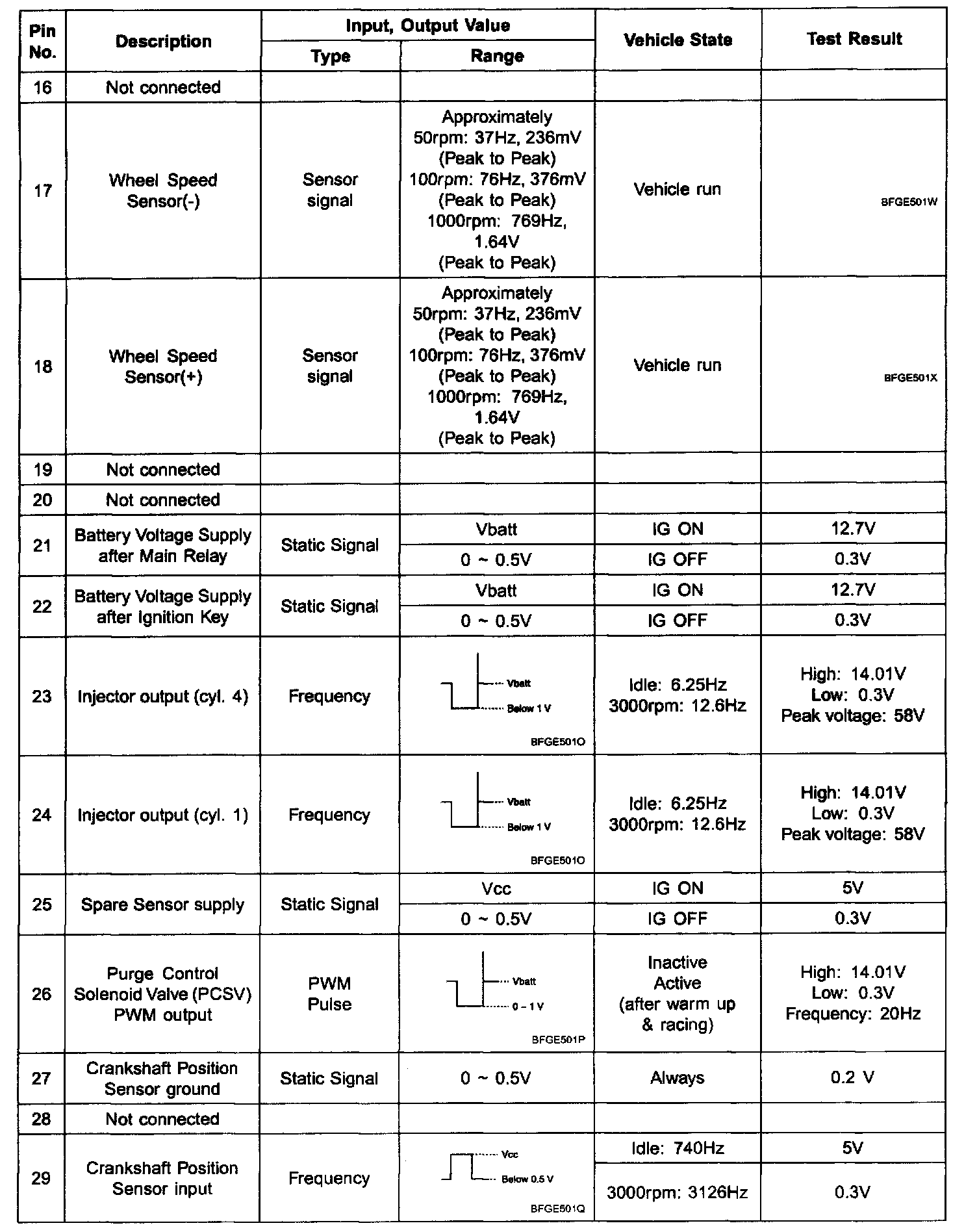 Pinout Values and Diagnostic Parameters