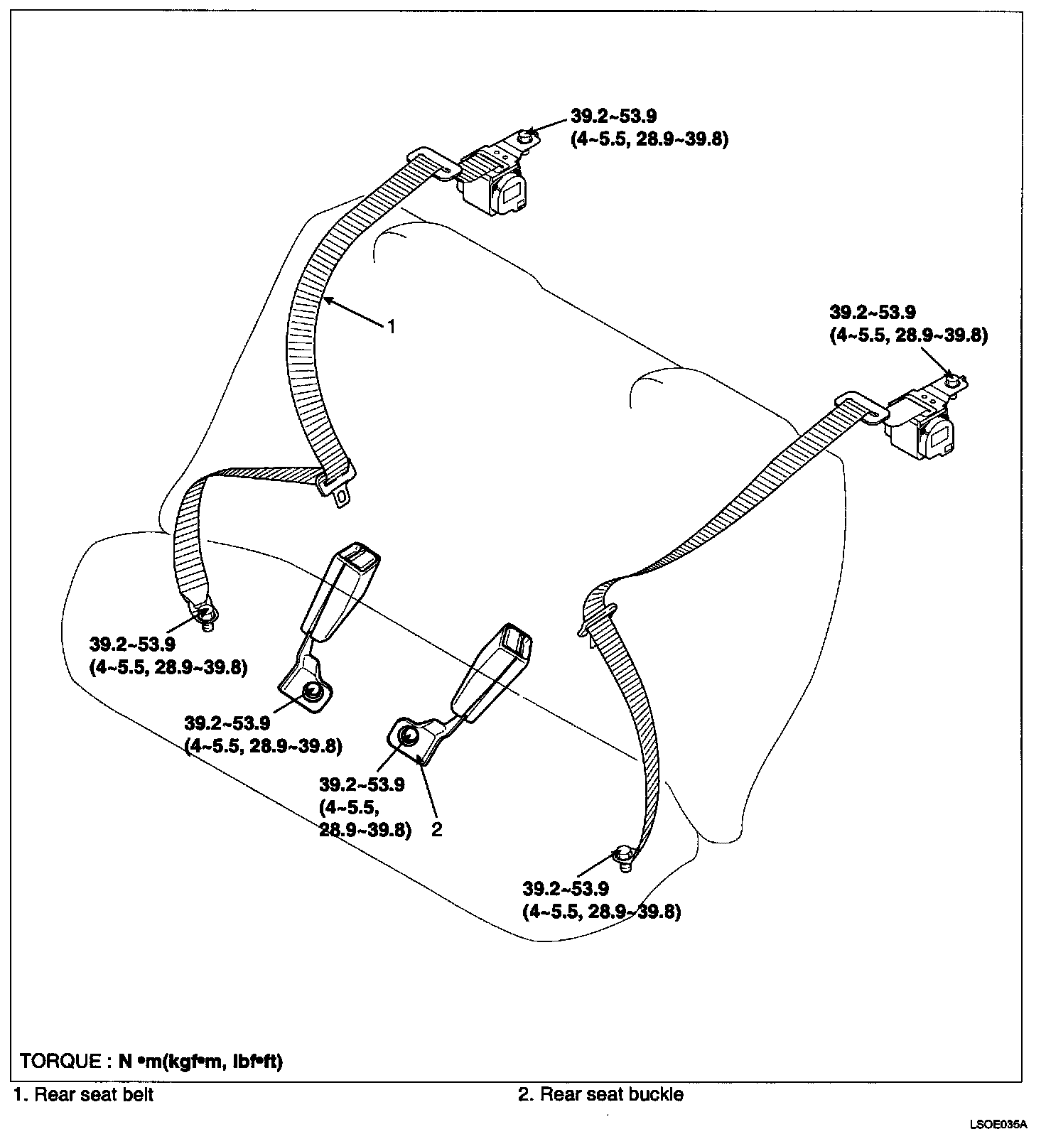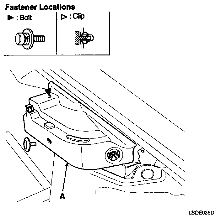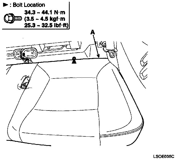 1. After loosening the rear seat back mounting bolt, remove the rear seat back (A).