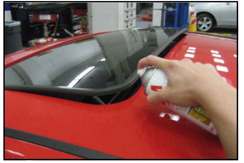 2. Spray dry silicon lubricant onto the sunroof glass panel weather-stripping.