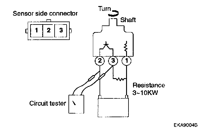 1. Remove the vehicle speed sensor and connect a 3 - 10 K Ohms resistance as shown in the illustration.