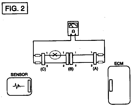 If an open circuit occurs (as seen in [FIG. 1]), it can be found by performing Step 2 (Continuity Check Method) or Step 3 (Voltage Check Method) as shown below.