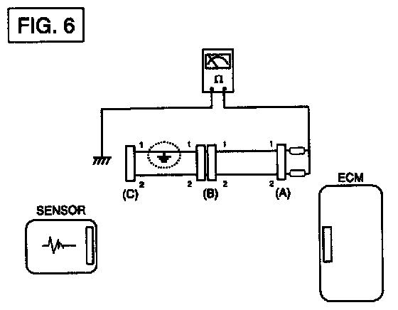 a. Disconnect connectors (A), (C) and measure for resistance between connector (A) and Chassis Ground as shown in [FIG. 6].
