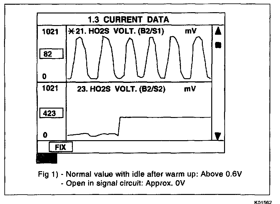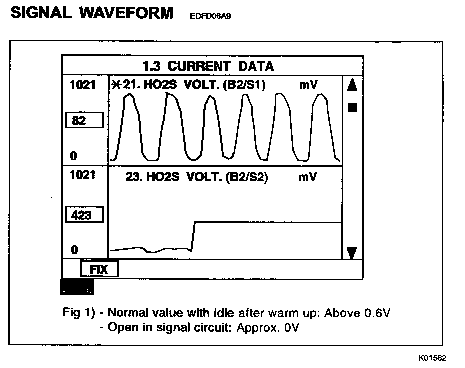 1. Warm up the engine to normal operating temperature and check that HO2S signal is active.