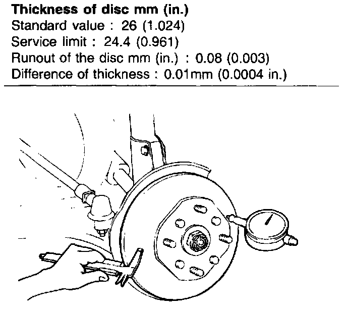 6. Inspect the disc by using a calipers and a dial gauge.
