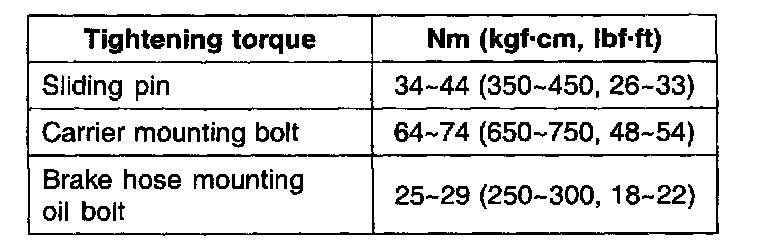 Bleeder screw tightening torque: 7 - 13 Nm (70 - 130 kgf-cm, 5.2 - 9.6 ft. lbs.)